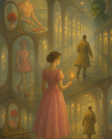 Each mirror reveals not just the past, but the fragments we hide even from ourselves. Truth glimmers in the quiet light of awareness — waiting for those who dare to look beyond the surface.
