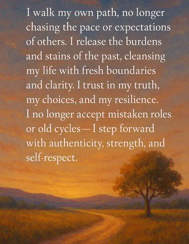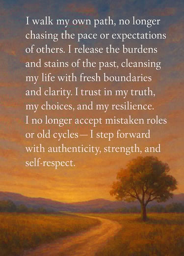 A moment of quiet strength and renewal. This piece speaks to the courage of walking one’s own path — releasing the weight of the past, redefining boundaries, and stepping forward with clarity, truth, and self-respect.